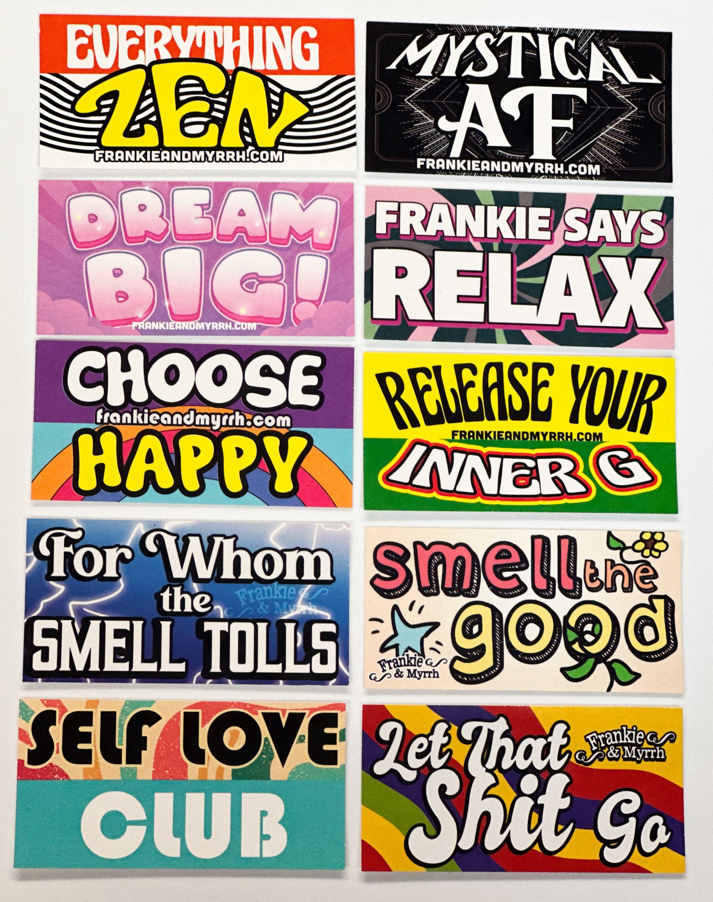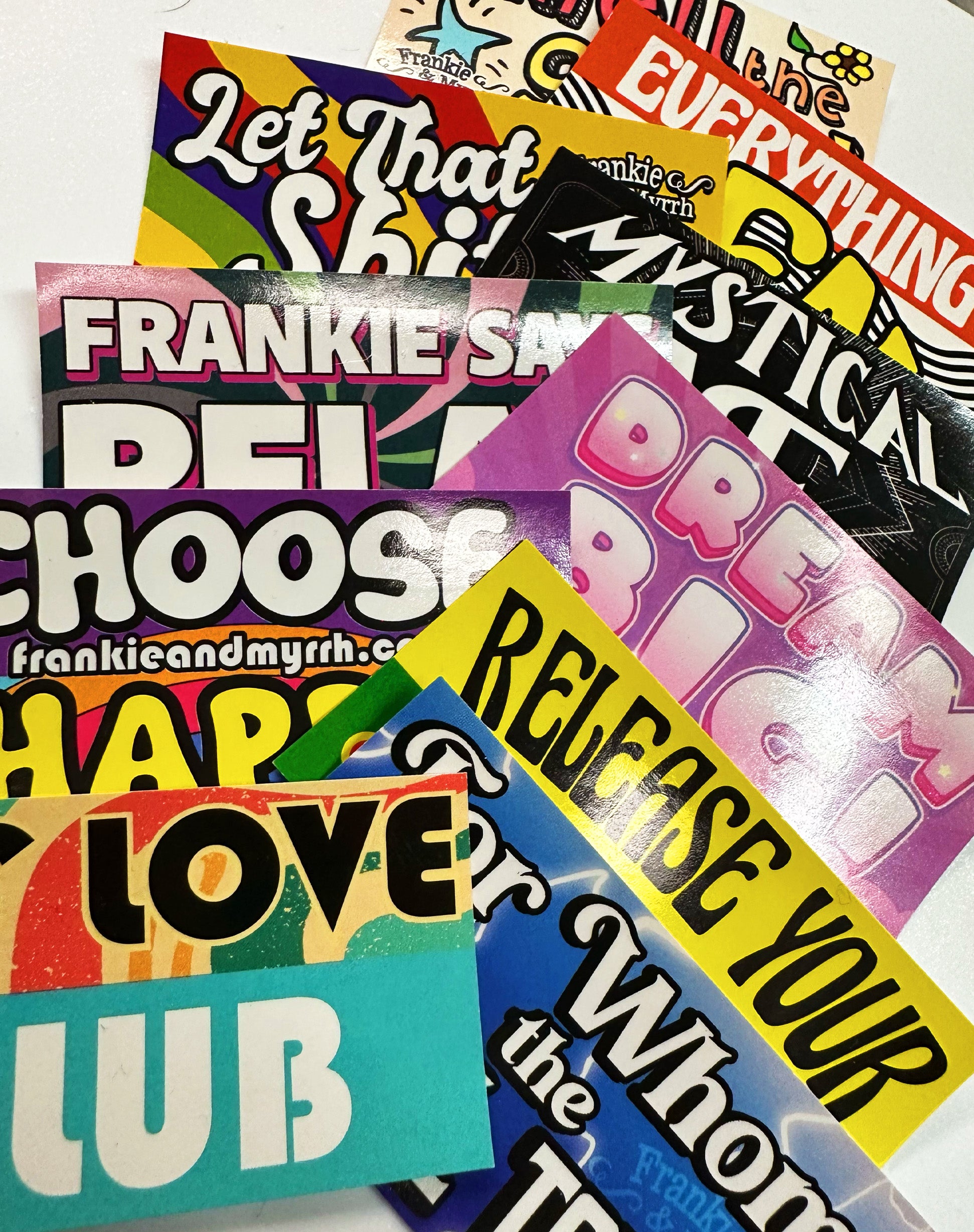 Frankie's Favorite stickers all together for a pack of 10 vibrant and fun stickers!